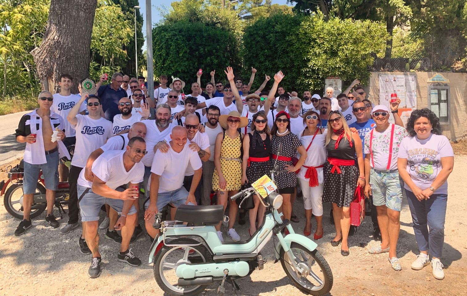 Al termine di un cordiale e rifocillante ristoro a base di porchetta, nel piazzale antistante la chiesa, offerto dalla Macelleria da Ze, il gruppo capitanato da Camillo Brandimarti e dall’assessore Bruni, anche lei in sella al suo Si, ha fatto ingresso al centro storico, dove conduttori e amici hanno potuto transitare nel famoso vicolo più stretto d’Italia. Altro momento simpatico è stato quello dell’aperitivo al Bar Centrale di Ripatransone, con il brindisi augurale con il vino Costadoro, quindi tutti in sella verso il Ristorante Romano, dove si è sviluppato il momento gastronomico, di grande aggregazione, per il grande piacere di ritrovarsi tra tutti i partecipanti. Al termine la premiazione per il miglior look, : tema dell’edizione 2022 erano gli anni ’40 e ’50. La vittoria è andata a Dino, di Ceprano e a Stefania, di San Benedetto, seguiti da Marzia, giunta da Jesi, ed Elisabetta, arrivata da Fabriano. Sul terzo gradino del virtuale podio sonbo saliti Gaia e Daniele di Ceprano. Poi di nuovo in sella all’amato Si, quindi nuova partenza polverosa per rinnovare il festoso e ammirato carosello. Ultima tappa il Caffè Big, per la conclusiva cocomerata.