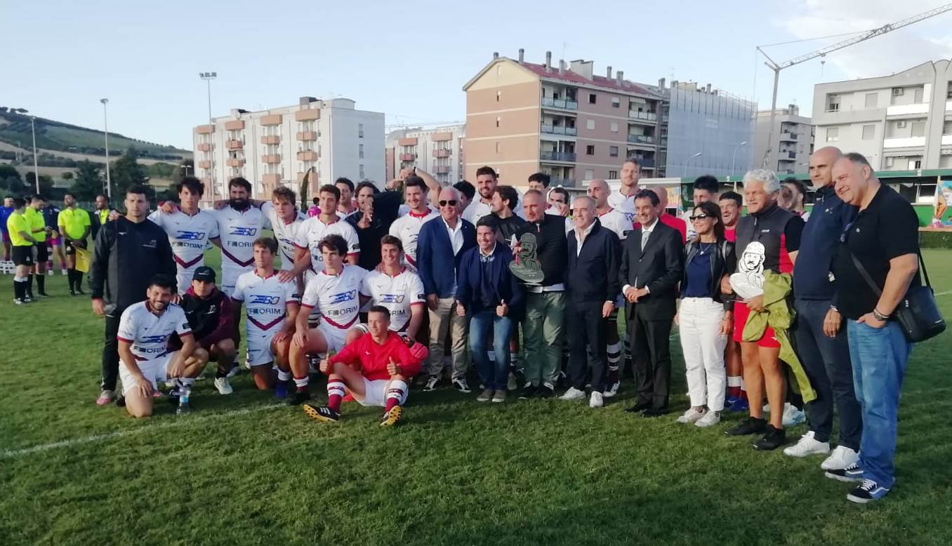 Oltre a lui, tante sono state le personalità presenti al “Mandela”, nonostante il forte vento che ha spirato per l’intero pomeriggio. Dal questore di Ascoli Vincenzo Massimo Modeo, al capo di gabinetto Guido Riconi, che ha valorizzato la presenza dei cani della Squadra Cinofila della Questura di Pescara, Ayrton e Balto, al sindaco di San Benedetto Antonio Spazzafumo, all’assessore a sport e turismo Cinzia Campanelli, alla consigliera nazionale della Federugby Antonella Gualandri, all’ex nazionale di rugby Giambattista Croci, all’assessore allo sport del comune di Ascoli Nico Stallone, agli sponsor (ed ex rugbisti) della squadra sambenedettese Fabio e Filiberto D’Angelo. Prima dell’inizio della partita è stato osservato un minuto di raccoglimento in memoria delle vittime dell’alluvione del nord delle Marche.