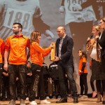 La manifestazione è stata scandita da numerosi momenti di premiazione della stagione 2015 che hanno sottolineato gli esaltanti successi conseguiti dagli Orange in una delle stagioni probabilmente tra le più vincenti della storia dell’atletica sambenedettese, puntualmente sottolineati da clip video suggestive, emozionando il folto pubblico che ha riempito il Teatro Concordia in ogni ordine di posto.