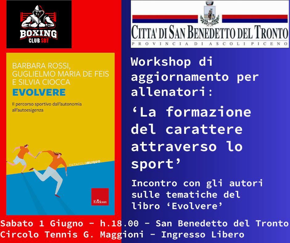 L’associazione sportiva dilettantistica Boxing Club Sbt, supportata dall’assessore allo sport Cinzia Campanelli, organizza in collaborazione con la dottoressa Barbara Rossi, (psicologa sportiva – referente Nazionale Figc, area psicopedagogia) un corso di aggiornamento di psicopedagogia e cultural intelligence applicate allo sport giovanile multidisciplinare, per tutti i tecnici, istruttori, educatori e docenti di educazione fisica, sabato 1 Giugno, presso il circolo tennis Maggioni di San Benedetto, dalle ore 18 alle ore 20.