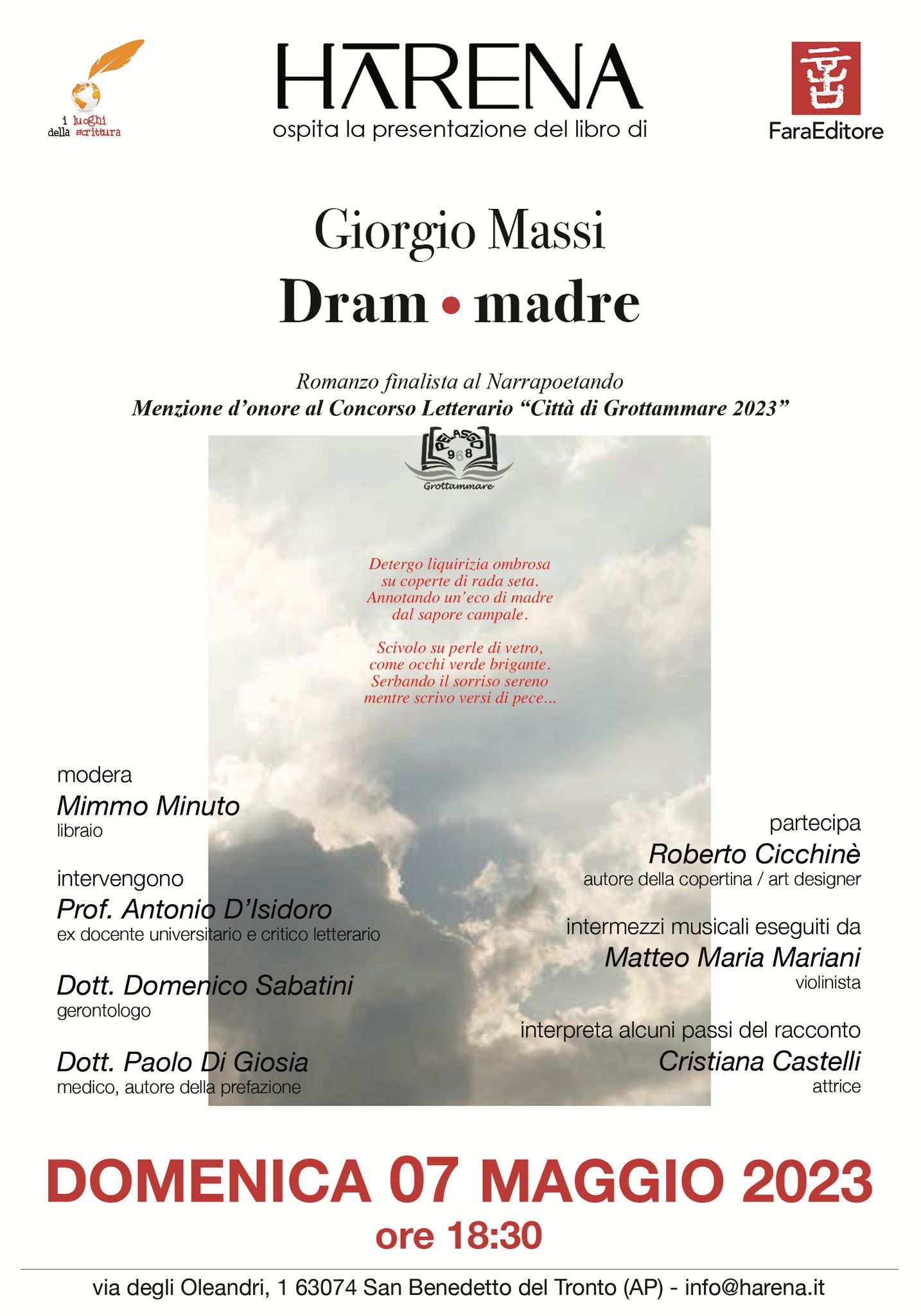 Domenica 7 maggio, alle 18:30, il ristorante Harena ospita la presentazione del libro “Dram.madre” di Giorgio Massi, edito da FaraEditore.