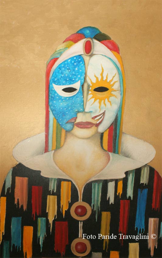 E’ la maschera degli opposti, il bene il male, il sole e la luna, il dramma e la gioia. Tutto ciò che è la metafora della vita che il carnevale rivela nella sua liberazione del costume. Costumi che nascondono la propria intimità, il proprio inconscio .