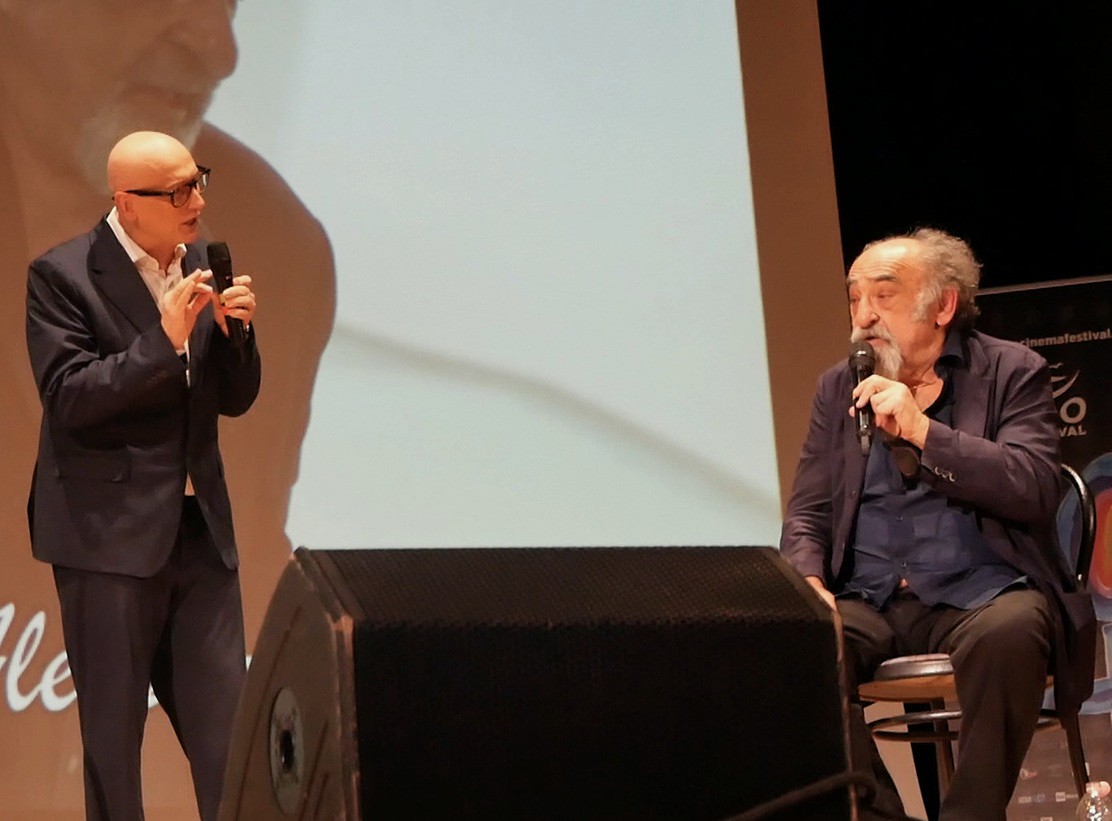 In chiusura l’attesa performance da mattatore di Alessandro Haber accompagnato dal giovane regista Denis Nazzari che lo ha diretto del corto “Prova d’Amore”, vincitore della scorsa edizione del festival. Haber ha parlato di cinema, teatro, politica, religione, guerra, senza risparmiare nessuno. Poi la chiusura con un accenno di “La valigia dell’attore”, accompagnato alla chitarra dal maestro Cristiano Corradetti; un pezzo che – ha raccontato lo stesso Haber – Francesco De Gregori scrisse ispirandosi a lui.