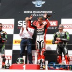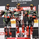 Imola- Il pilota della Ducati precede sull’arrivo Rea e Sykes.